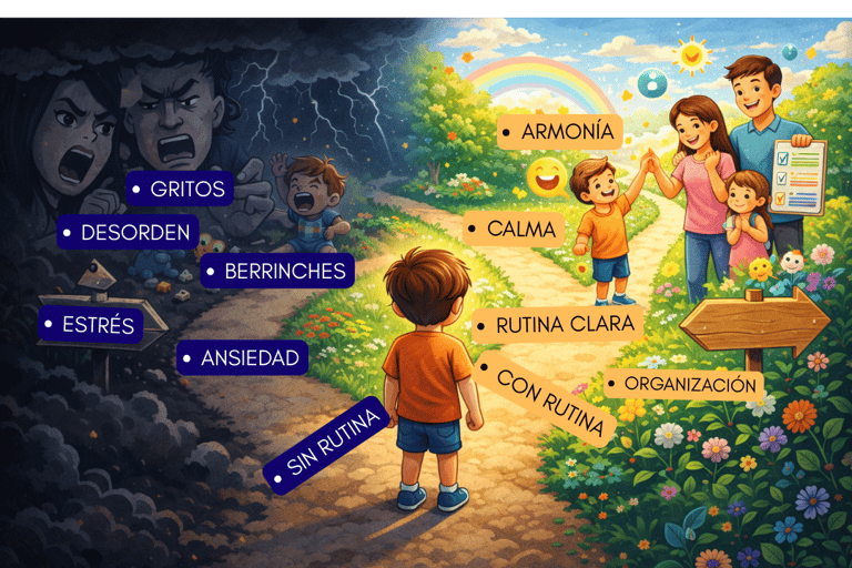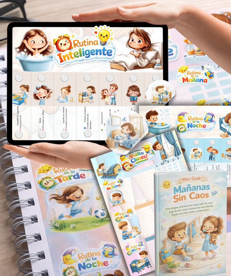 Un sistema completo que te entrega todo lo necesario para que tus hijos sigan la rutina sin gritos, sin castigos y sin desgaste diario.